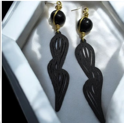 Unleash your unique sense of style with our Black Geometric Bead Earrings! These earrings feature a creative design with handmade black beads delicately wrapped in gold wire. Paired with our ethnic elastic black bead choker necklace with gold accents these earrings will elevate any outfit. Express yourself confidently and boldly with these stunning earrings.