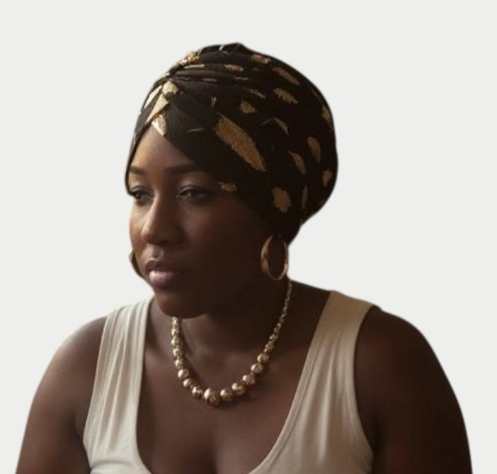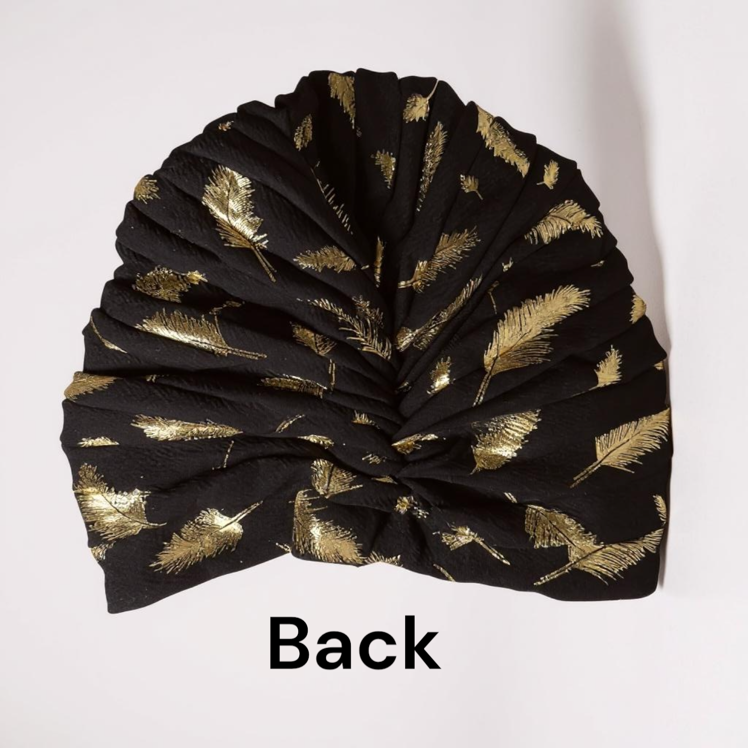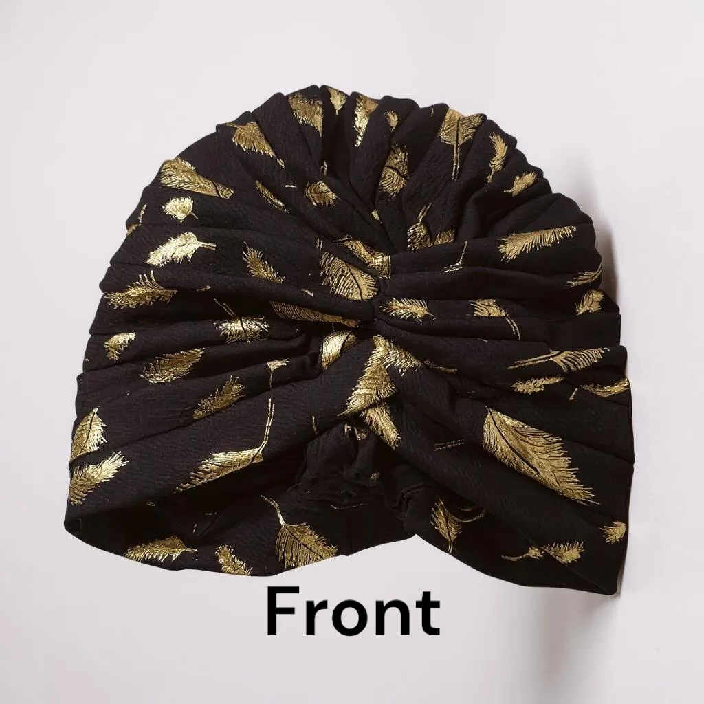 Constructed with a stretchy material and adorned with elegant gold flower accents, the Black Gold Flower Accent Turban Headwrap is both stylish and comfortable. The fabric features pleats and a twist knot, adding a touch of sophistication to its rich color and high-quality design. Whether you're heading to church or out for a night on the town, this versatile headwrap is perfect for any occasion. It also boasts a universal one size fits all design for maximum convenience.