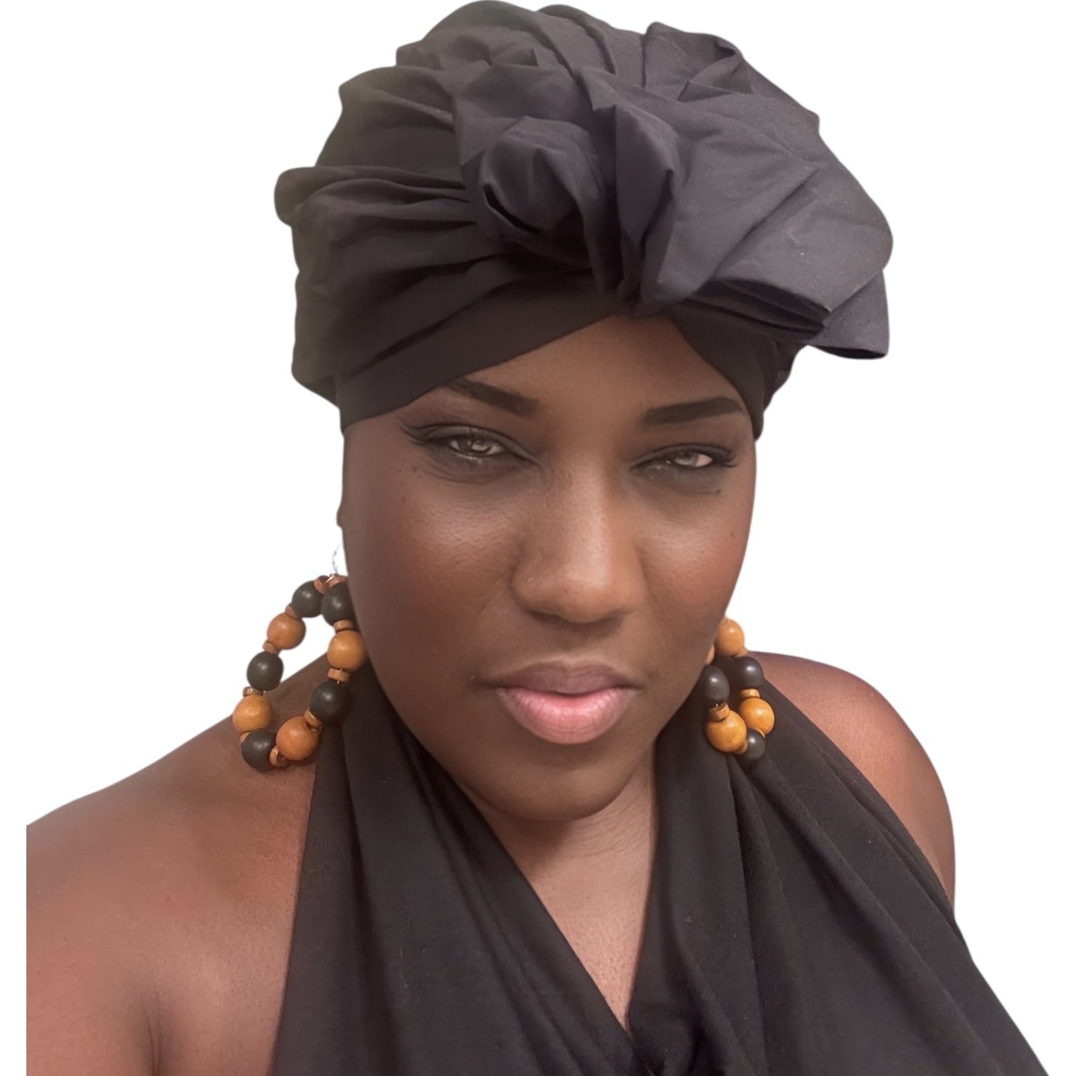 This Black Ruffle Turban Headwrap lends a vintage-inspired touch to any outfit. The beautifully crafted ruffle bow adds a touch of elegance and sophistication, while the soft, breathable fabric ensures comfort and convenience. Step out in style with this easy-to-wear, slip-on head wrap.