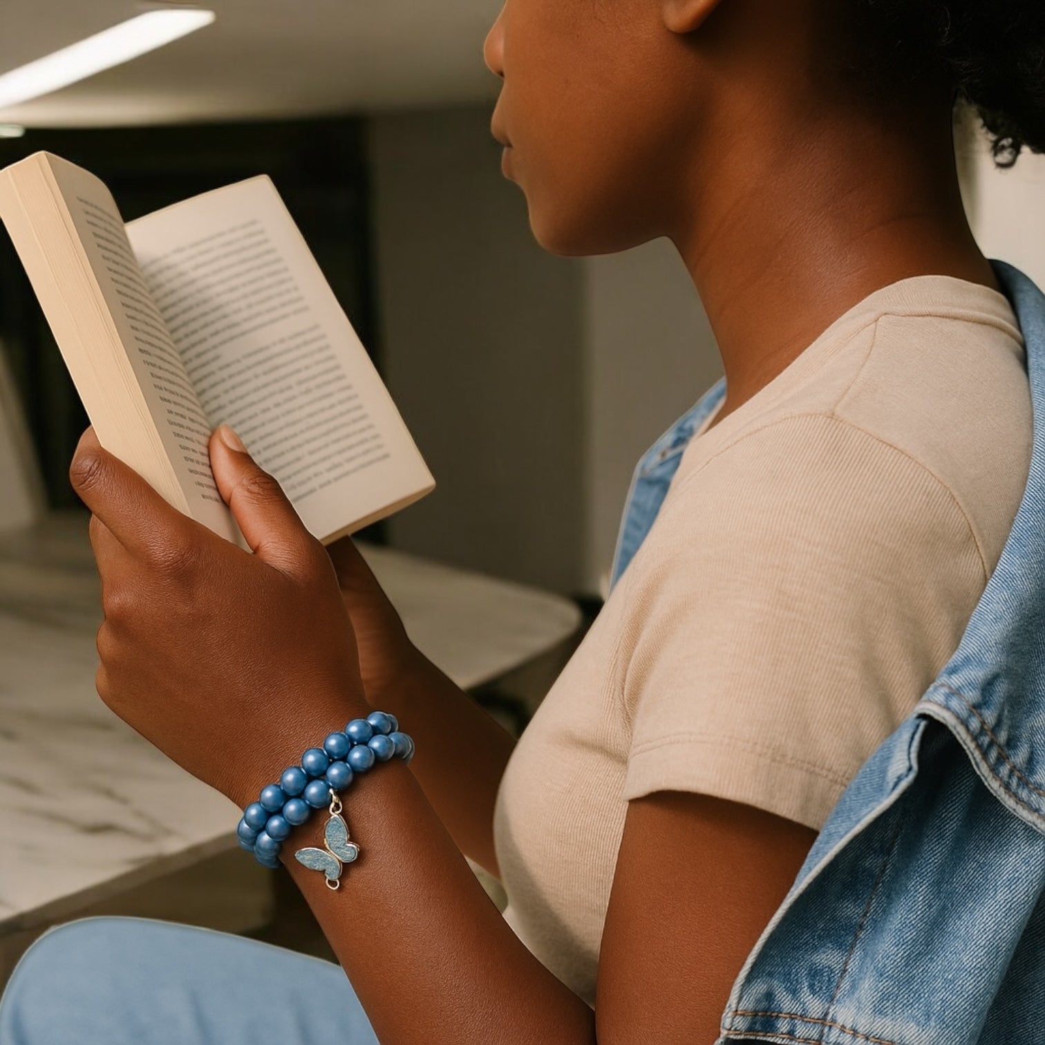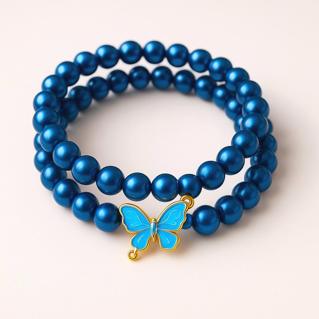 Discover the significance of blue with our Blue Butterfly Glass Bead Bracelet Set. Symbolic of the sky and butterflies, this stunning set is perfect for adding a touch of class to any outfit. Made with elastic for a comfortable fit, and featuring 10m blue glass beads. Feel a sense of beauty and order today!