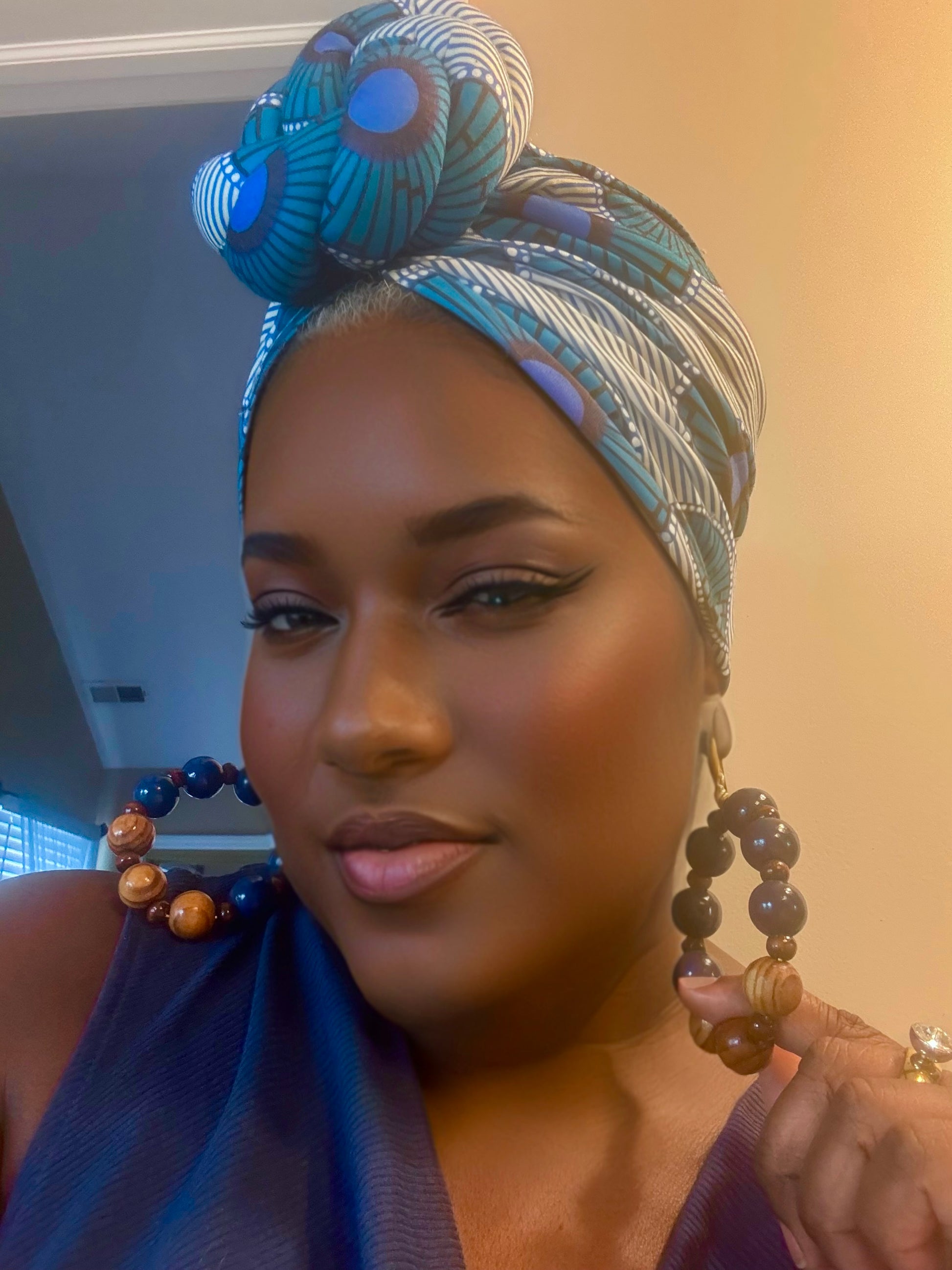Make a bold statement with our unique Bold Blue and Brown Wood Earrings. The stunning color combination will enhance any look, allowing you to express your individuality. These oversized earrings are perfect for those looking to add a touch of daring to their style. Dare To Be You with our Oversized Knotted Blue or Beige Turban, and complete the look.