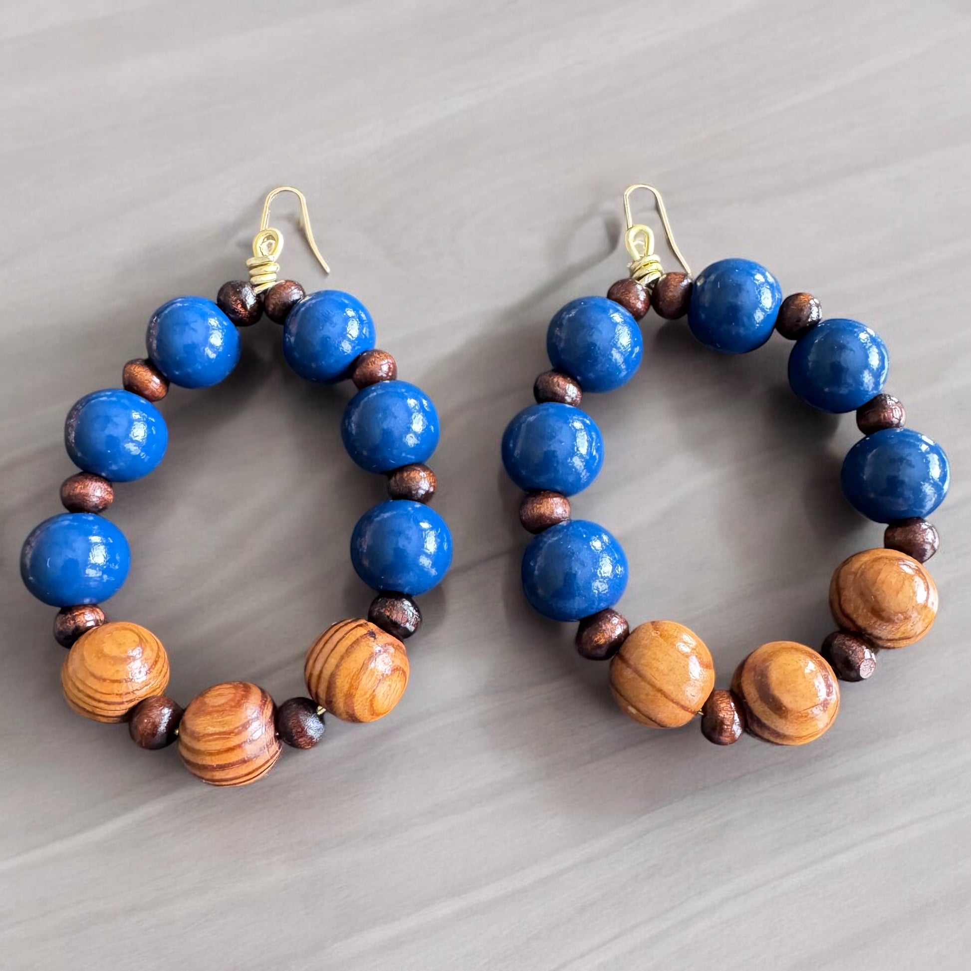 Bold Blue and Brown Wood Earrings