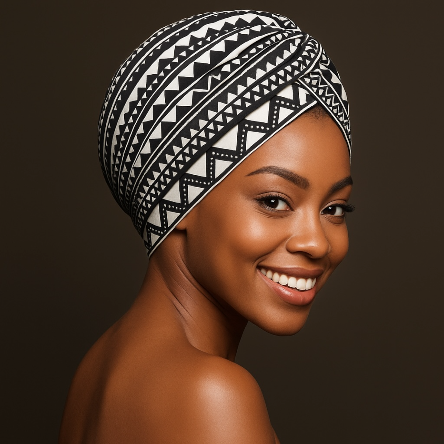 Ethnic Pre Twisted Black And White Turban Headwrap