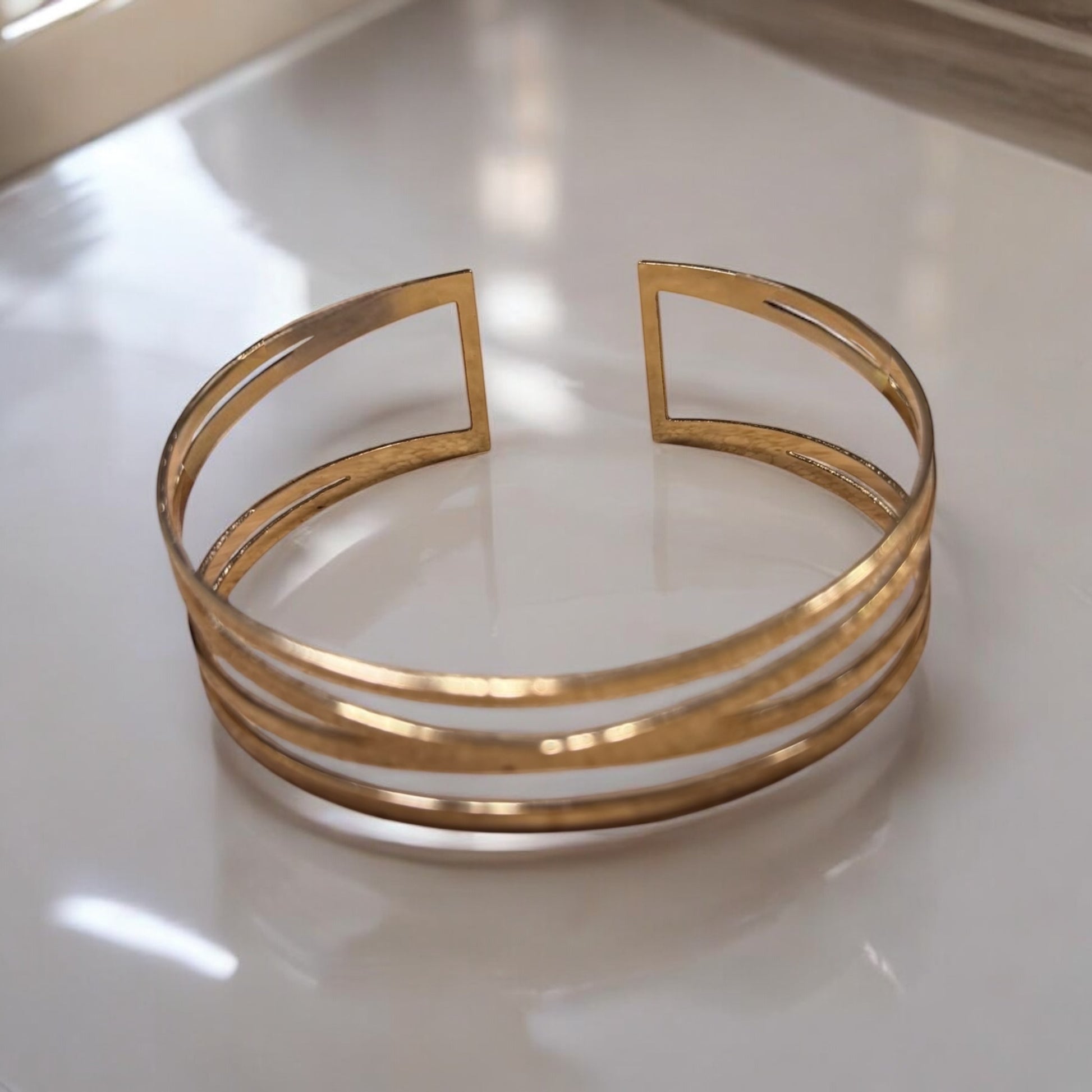 Elevate your style with our Gold Tone Adjustable Cuff Bracelet. This statement piece adds a touch of sophistication and elegance to any outfit. Featuring a sleek gold tone and adjustable design, it's the perfect accessory for any fashion-forward individual. Don't miss out, elevate your look today.