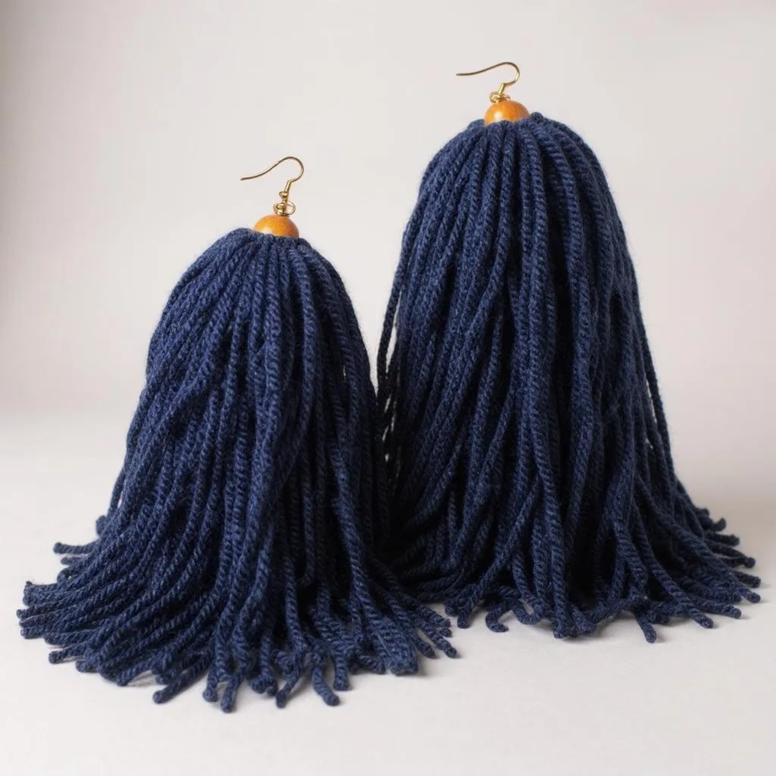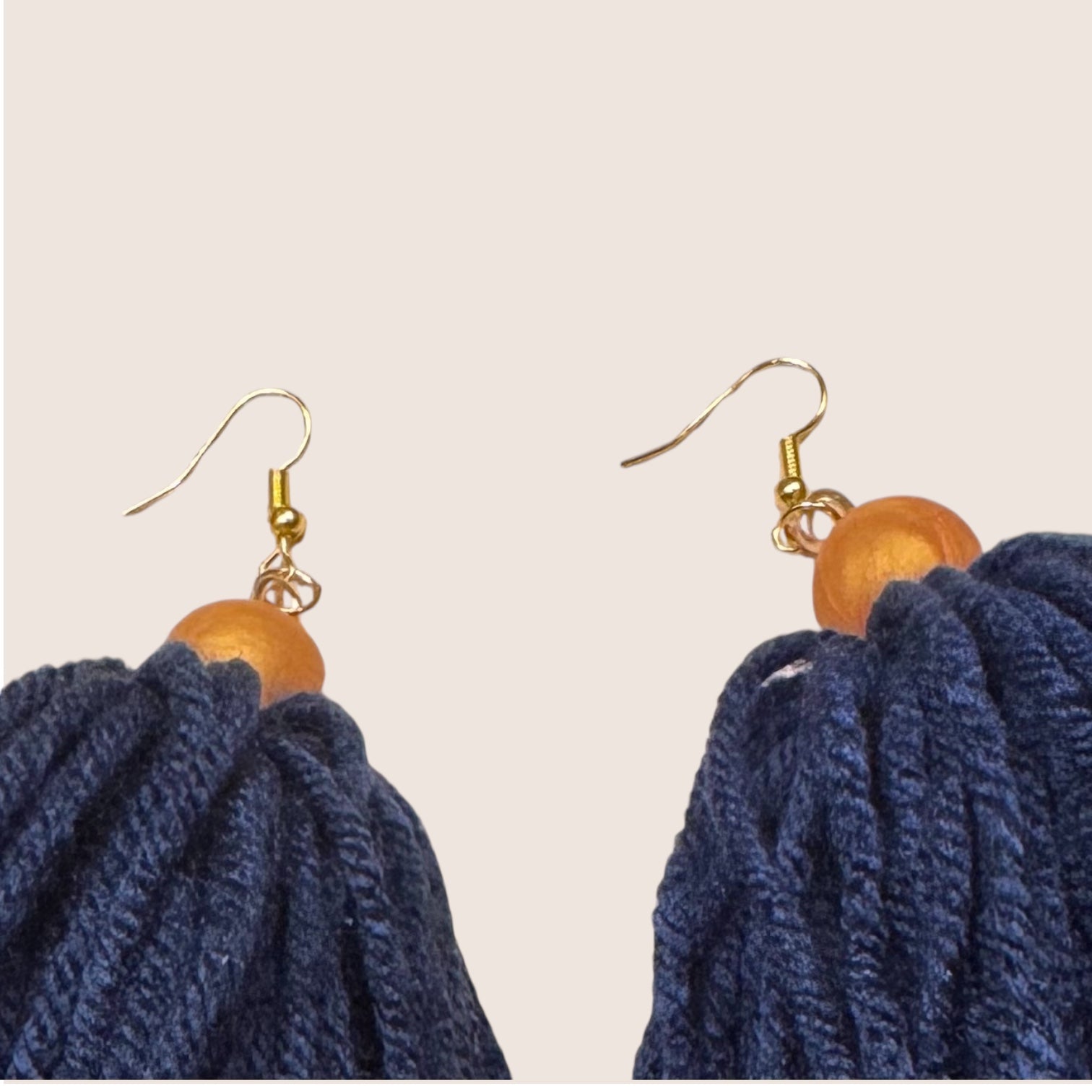 Expertly handcrafted with navy blue tassels and a gold silicone bead, these statement earrings add a bold touch to any outfit. Measuring 5 inches in length, they are lightweight and flow seamlessly, making them the perfect accessory to spice up your look. Be confident and stand out with these stylish earrings.
