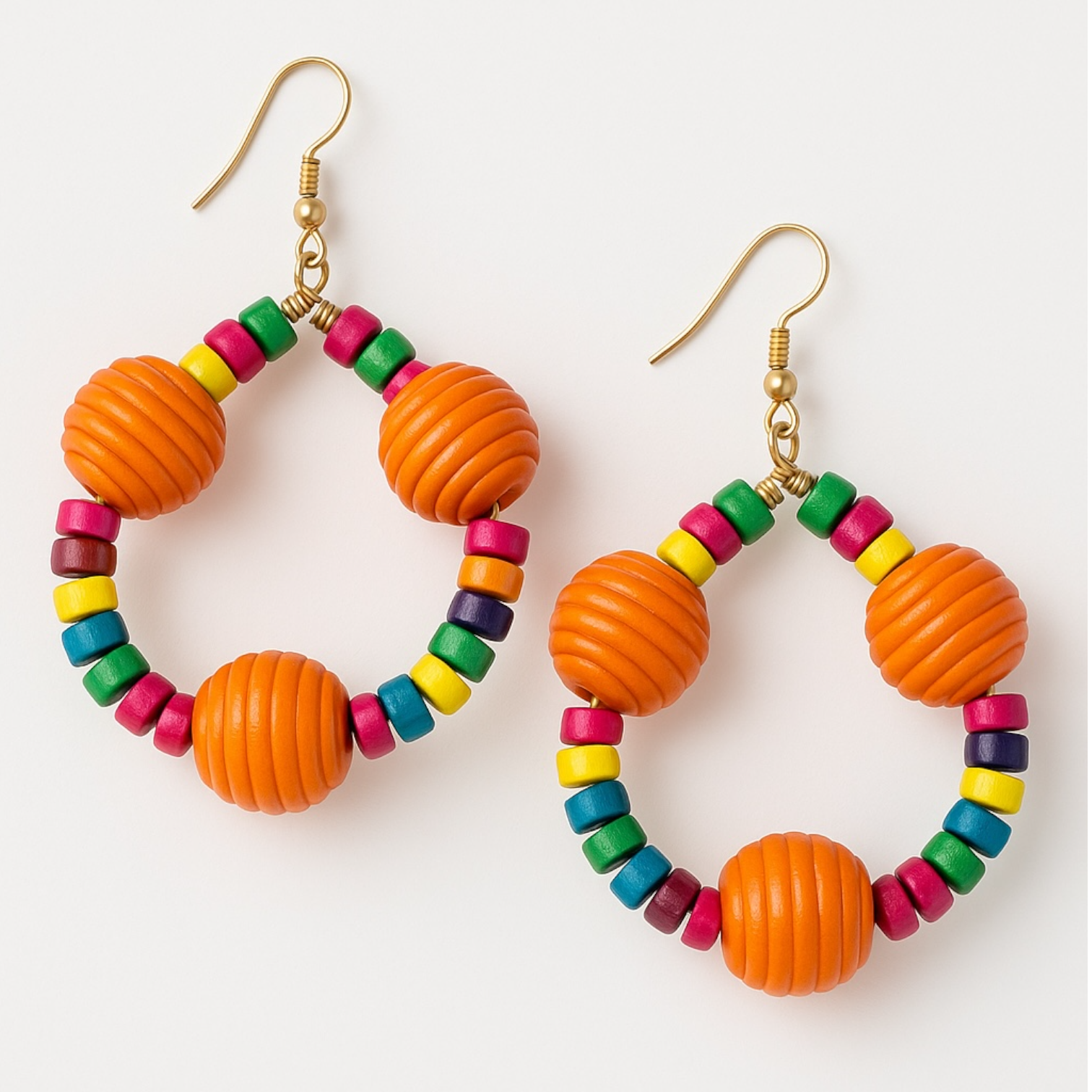 Introducing our vibrant Orange Beaded Earrings. Handcrafted with vibrant colors, these earrings add a pop of color to any outfit. Light weight and measuring 4 inches in length, they're fun and perfect for everyday wear. Get yours and make a statement!