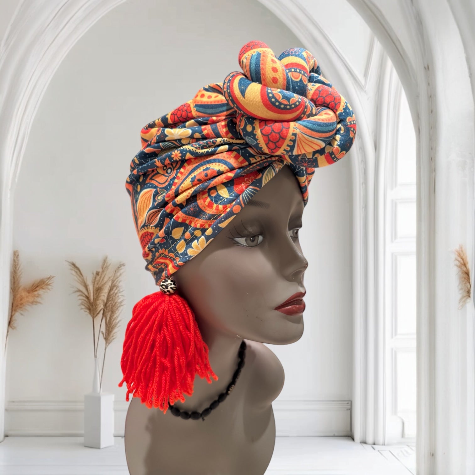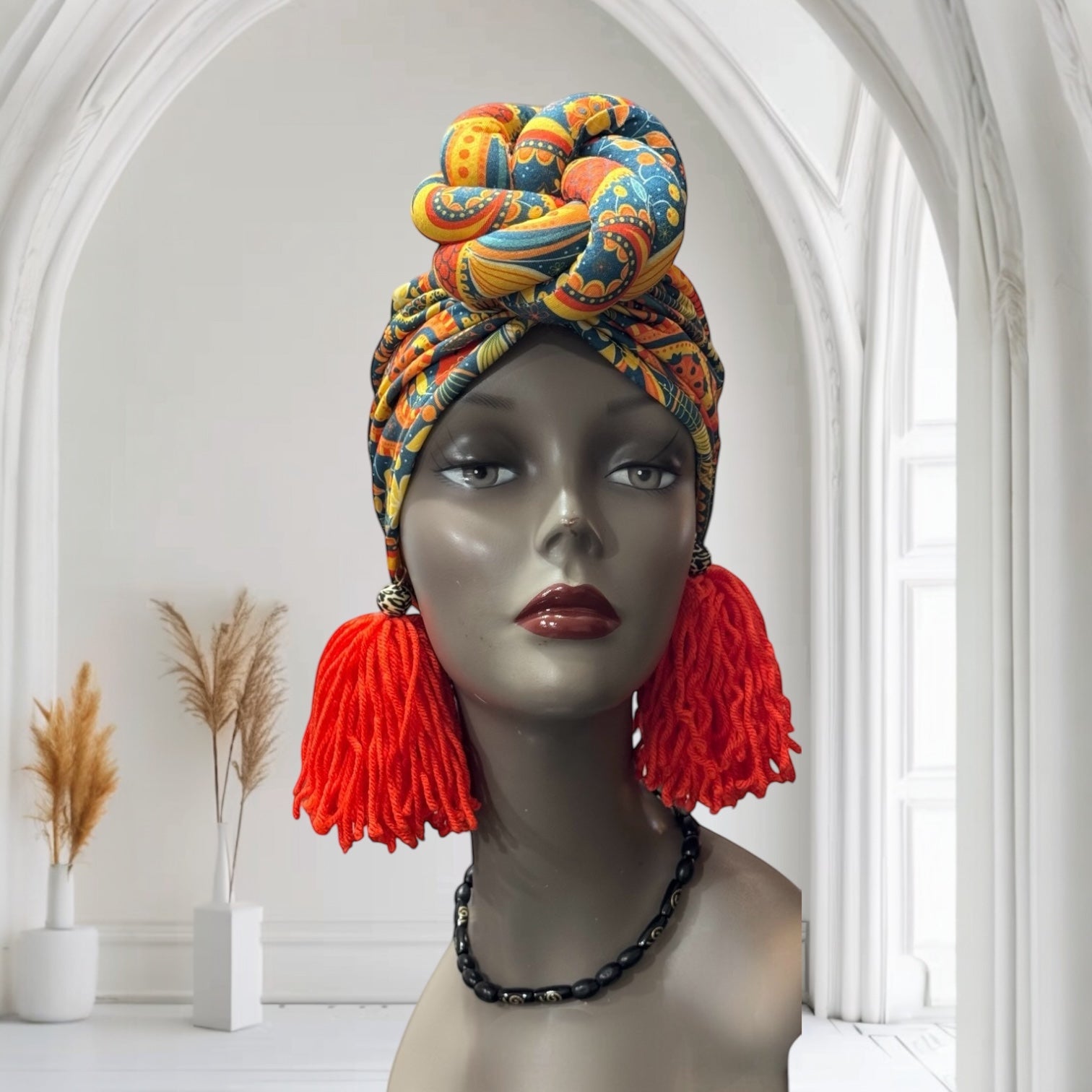 Elevate your weekend wear with our Orange Turban Headwrap! With an oversized knot, it's perfect for all head types and adds a fun, bold touch to any outfit. Plus, at a low price, you can pair it with our handmade earrings for a complete look. Embrace your individuality and stand out in style!