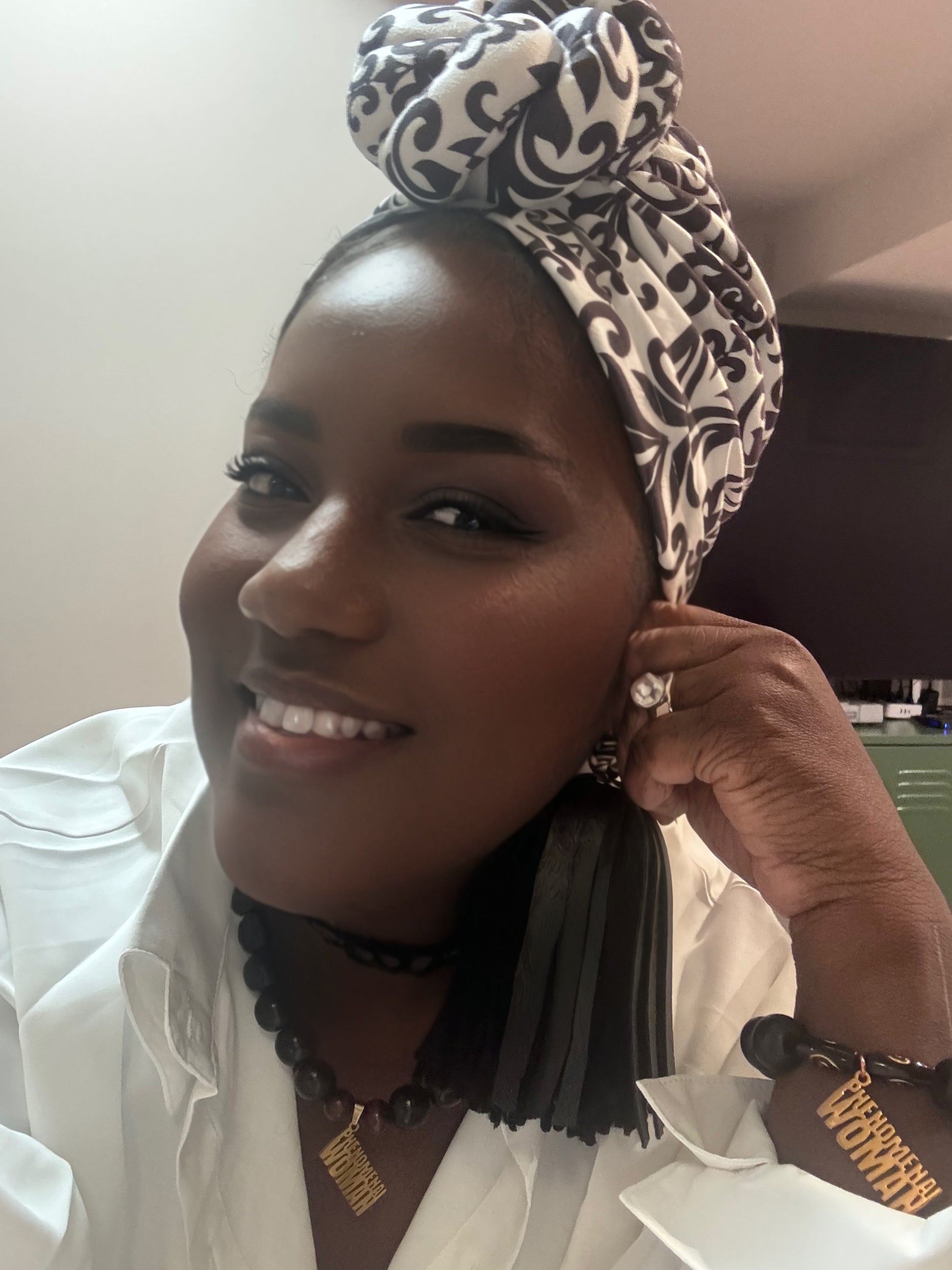 Add a touch of fun to any outfit with our Oversized Knotted Black and White Printed Turban Head Wrap. Perfect for those busy mornings when you need to add some style in a hurry. One size fits all for easy convenience. Pair with our Dare To Be You Jewelry earrings and you'll be looking stunning in no time!