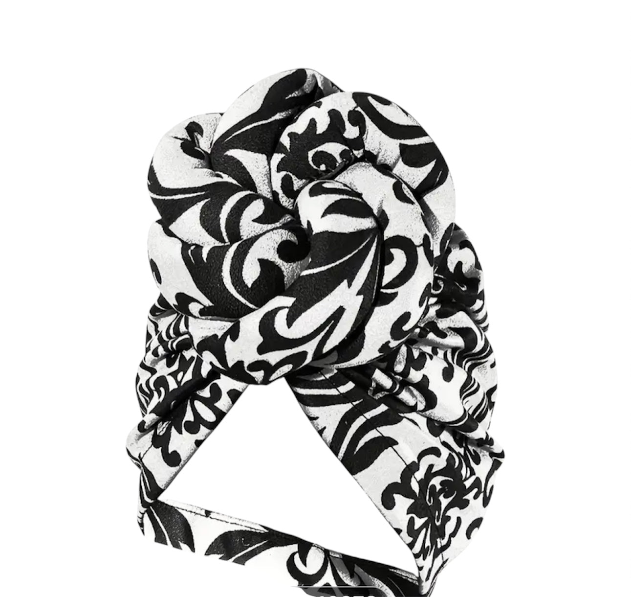 Oversized Knotted Black and White Printed Turban Head Wrap