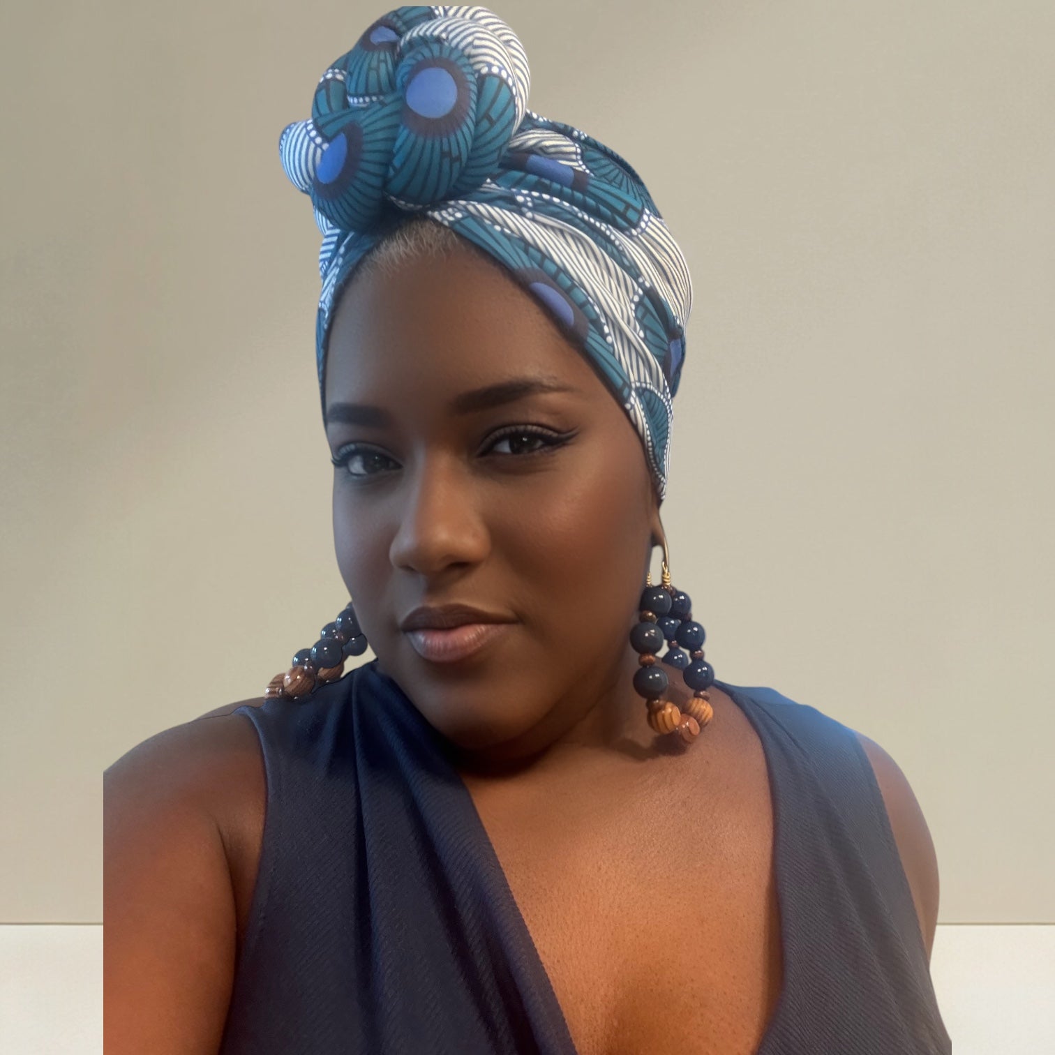 Oversized Knotted Blue and White Print Design Turban Headwrap