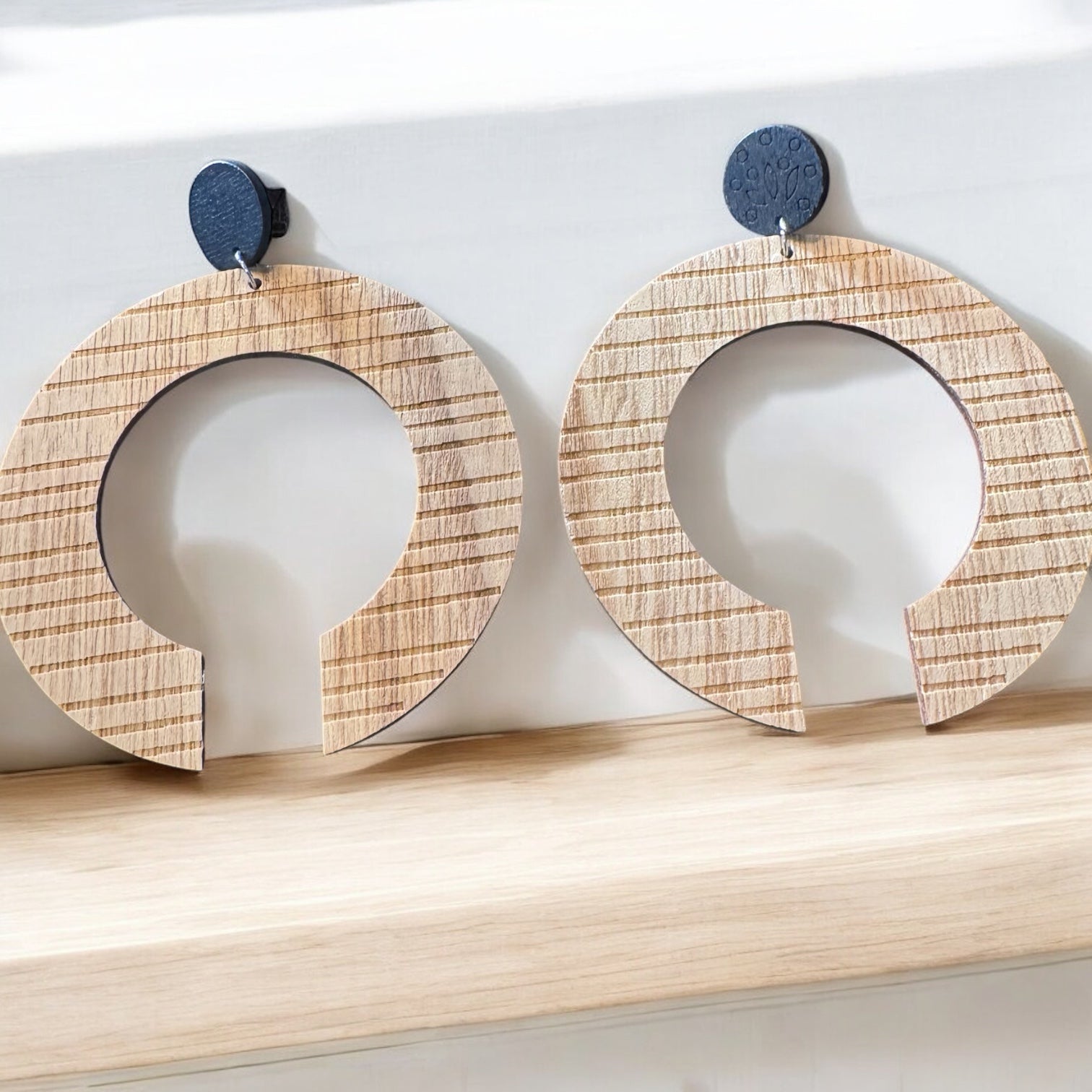 Upgrade your jewelry game with our Oversized Wood Hoop Stud Earrings. These bold statement earrings will make a statement wherever you go. Made with high-quality wood, they are lightweight and comfortable to wear. Perfect for pairing with an oversized Knotted turban, these earrings will add a touch of elegance and uniqueness to any outfit.