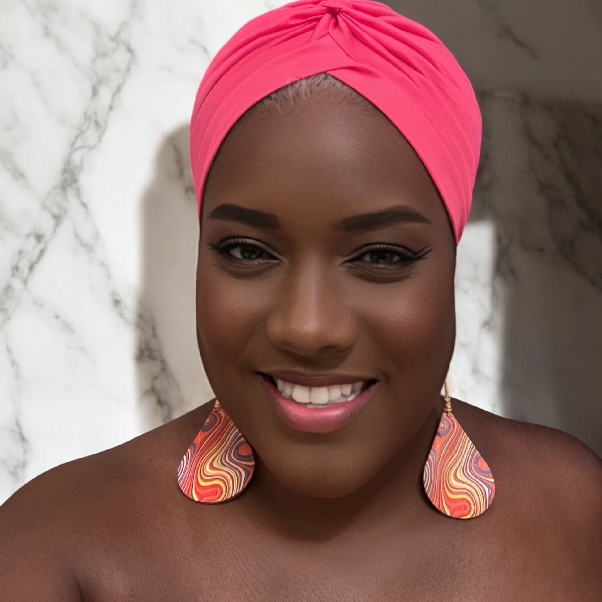 Stay stylish and comfortable this summer with our Pink Turban Head Wrap. Slip it on for an effortless look that is perfect for concerts or vacation. Pair it with our Dare To Be You Jewelry Earrings for a complete and fashionable outfit. Made from soft and durable fabric, you'll feel confident and chic all day long.