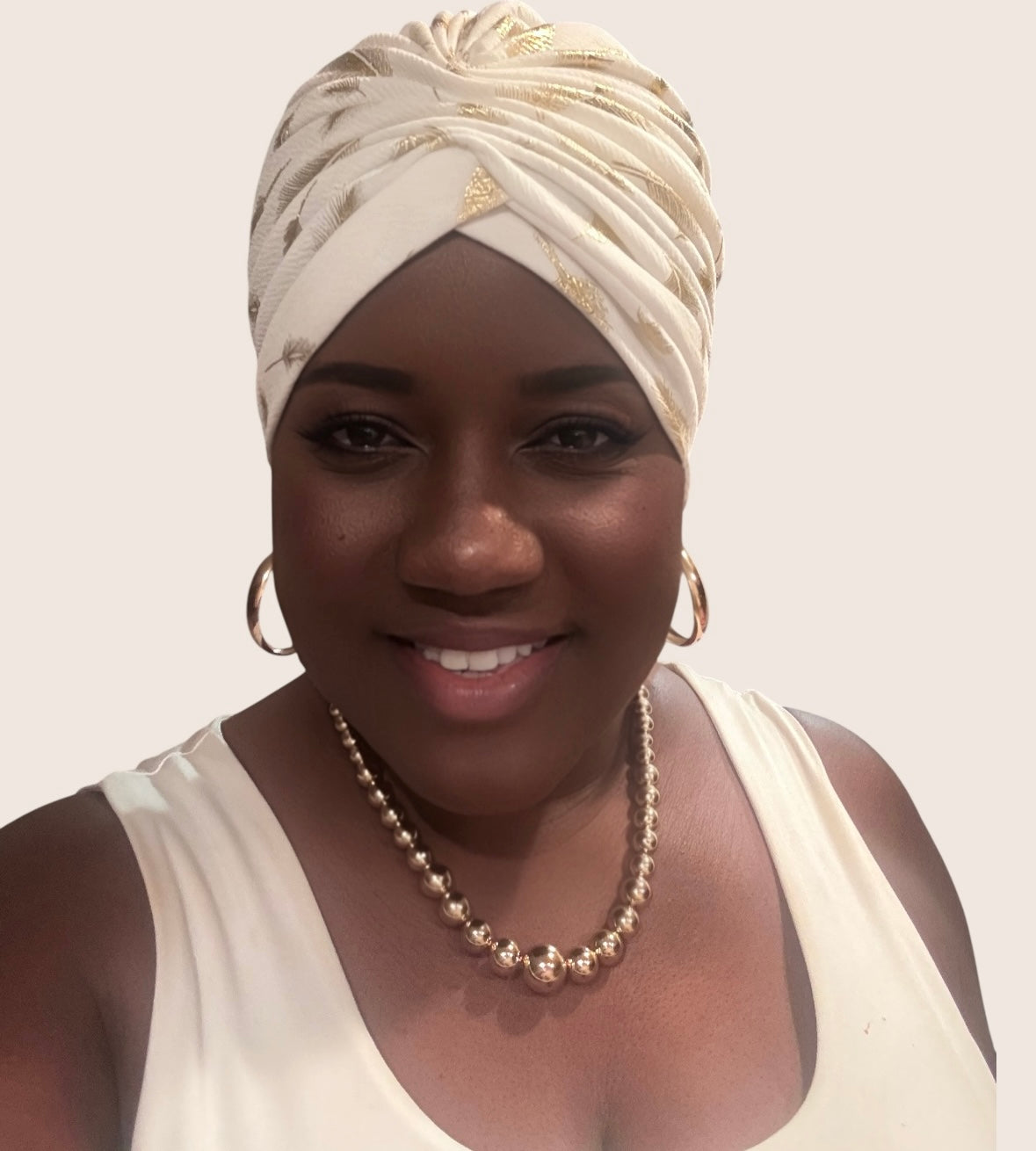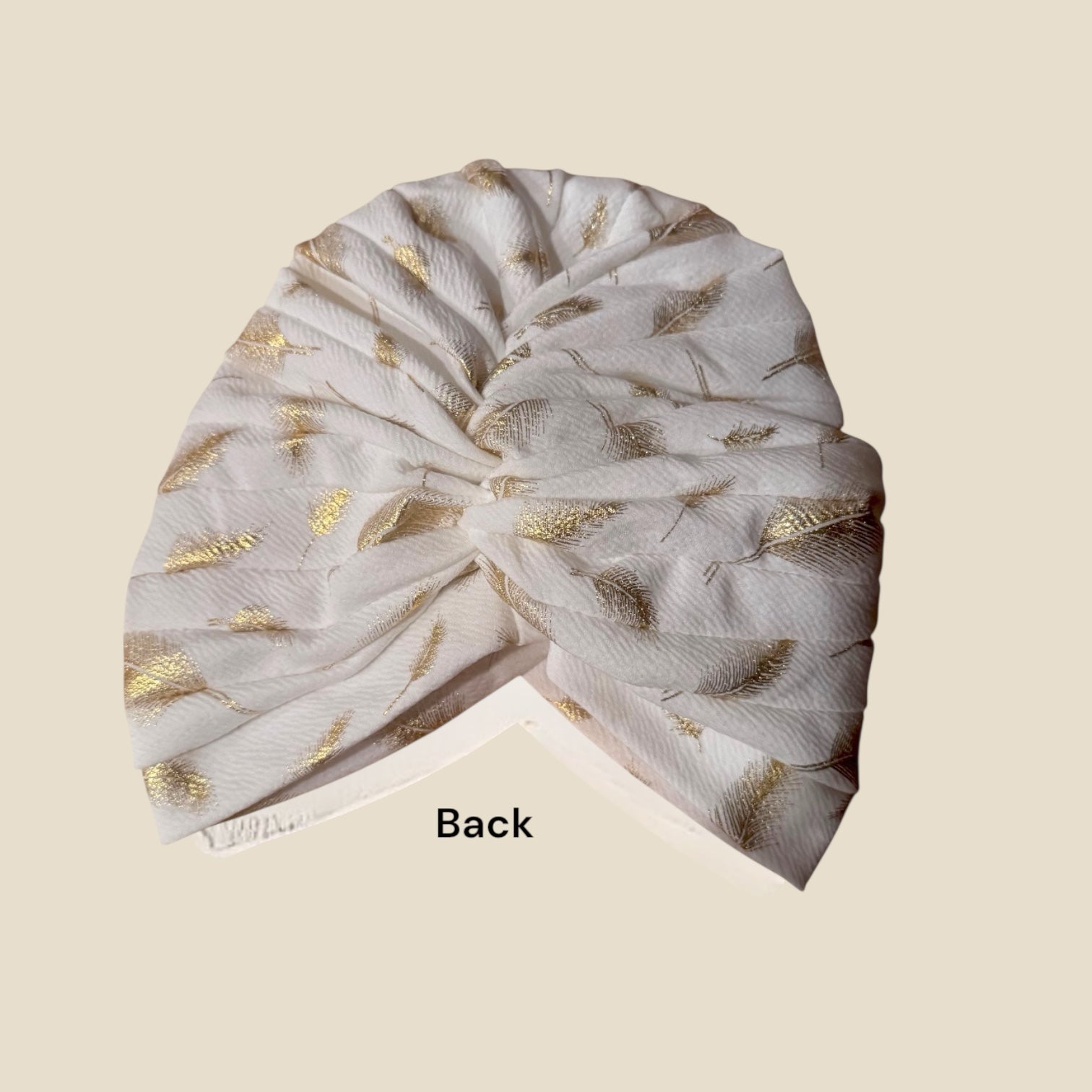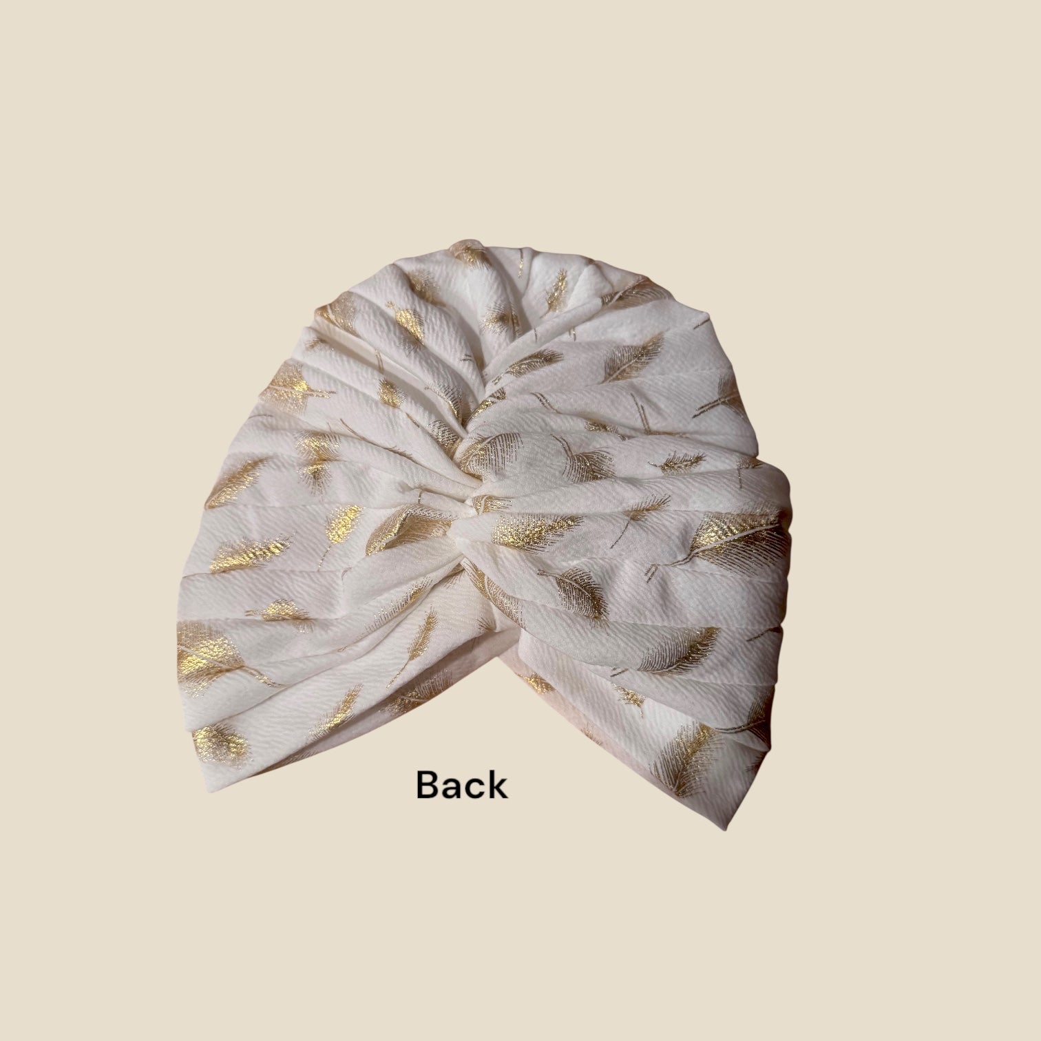 White Turban Headwrap With Gold Flowers Accents A cents