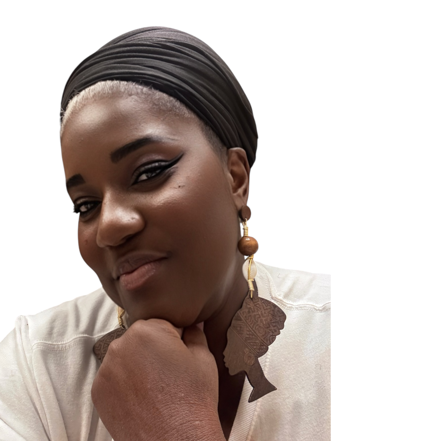 Wooden Nefertiti Earrings | Handmade Gold Accents